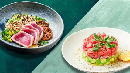 Still, whether you're sitting down for a fancy meal out or carving up an ahi tuna filet yourself at home, raw fish fans might be wondering: What's the difference between tuna tataki and tartare? The two main factors that separate these tuna steak recipes are that tataki is pan-seared and sliced into larger strips, while tartare is raw and cut into a mince — factors that also determine how these two dishes are served.