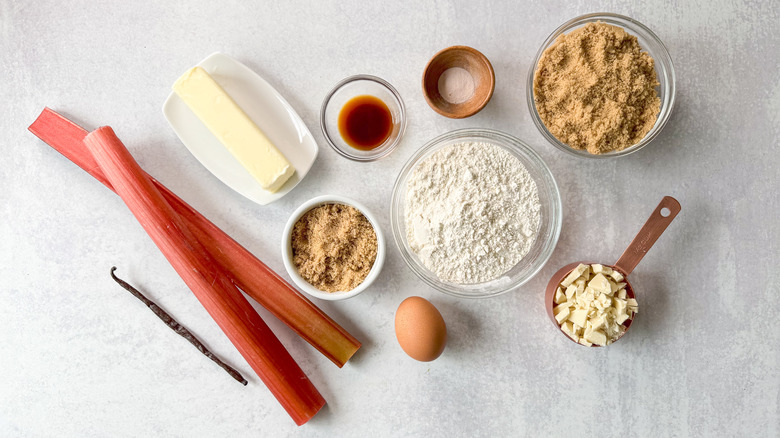 Gather the ingredients for rhubarb and white chocolate blondies