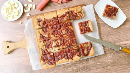 Rhubarb and White Chocolate Blondies Recipe