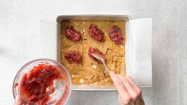 Step 18: Spoon the compote onto the blondie batter