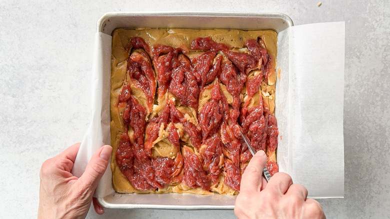 Step 19: Swirl the compote into the blondies