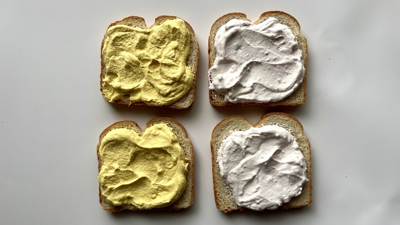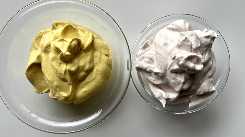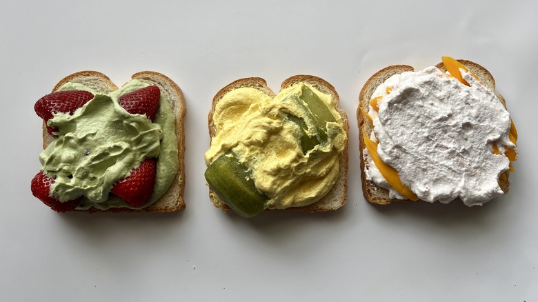 In this recipe, Le Moing uses natural ingredients to add tints to her whipped cream. She does say, though, that you can use food coloring if you don't care for the flavors of matcha or turmeric, or if you simply prefer not to purchase these additional ingredients. She adds that food coloring will provide more vibrant colors. Of course, you can always opt to go au naturel with your whipped cream, as many versions of the Japanese sandwich leave the cream white.