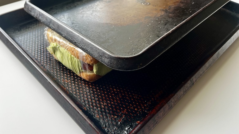Step 14: Press the sandwiches between two baking sheets