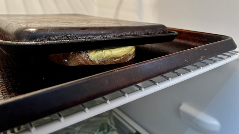 - Place the sandwiches on a baking sheet and gently compress them with another baking sheet.