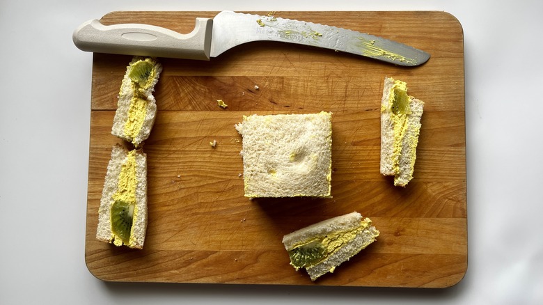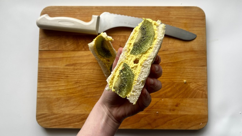 Since fruit is the main ingredient in these sandwiches, Le Moing is picky about the fruit she selects, saying "For best flavor, use organic or farmer's market fruit that's in season. They'll taste better. My favorite rule of thumb is that if the recipe is simple with few ingredients, use quality ingredients." For her take on Japanese fruit sandwiches, Le Moing opts for a classic combo of strawberry, kiwi, and mango, noting that all of these fruits pair perfectly with cream and adding that they make the most eye-catching center cuts.