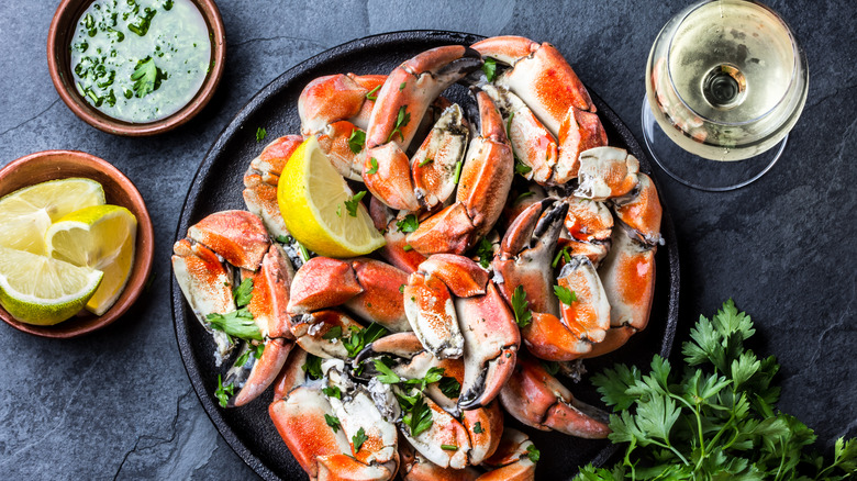 Plenty of seafood dishes incorporate spices that turn up the heat, and we love them for it, but spiciness and wine don't always come together well. It's not impossible, by any means, but it does significantly change the wine pairing process. For spicy seafood boils, like a crawfish boil, Krueger recommended the Soave Classico: "Suavia Soave is a perfect summer wine for spicy stuff. It's plush and peachy and goes great with shrimp, butter, garlic, chili, and lemon." That may not sound all that impressive, but having a wine as versatile as this one in your pocket can be a game changer.