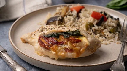 If you are wondering what to serve alongside this summer-stuffed chicken recipe, you'll be pleased to know that the sky really is the limit. As the dish is filled with summery flavors, why not pair it with some classic warm-weather dishes that you might enjoy at a barbecue or a picnic? Fresh and nutritious salads filled with crunchy vegetables for texture will provide a lovely light accompaniment. Or, if you prefer your veggies warm, a mixture of roasted peppers, zucchini, eggplant, and other summery vegetables will make for the perfect side alongside the chicken.