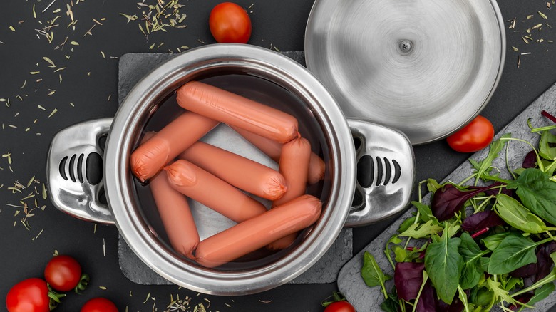 While getting the same ingredients that the Costco food court uses is a start, it's only the first step. Now you need to cook your hot dogs the same way too — given that there are a dozen different ways to cook hot dogs, how do you know which method to use? Luckily, the way that the Costco food court cooks its hot dogs and buns isn't a secret, and it's something that inquiring minds have wondered about online. According to a Costco food court worker on Reddit, Costco food court hot dogs are dropped in 180 degree Fahrenheit water for around 15 minutes until they reach an internal temperature of 165 degrees Fahrenheit, while the hot dog buns are steamed.