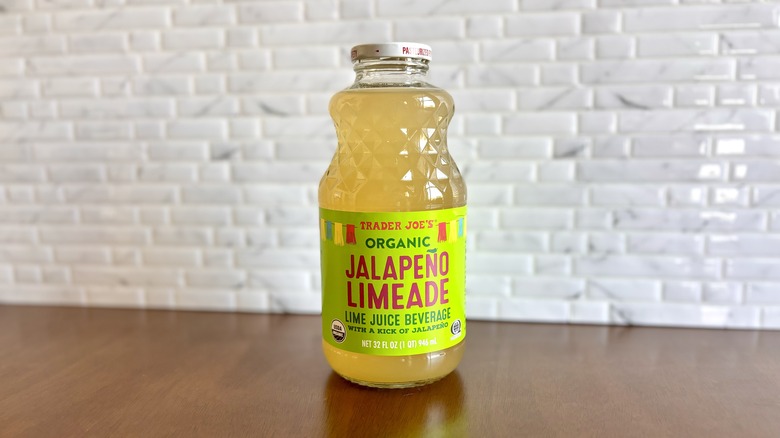 Summer after summer, Trader Joe's graces us with its jalapeño limeade, and we all owe the grocery chain a collective thank you for such a divine juice. Even if you don't typically like spice, there's a good chance you would still enjoy this beverage. The limeade itself is perfectly balanced, not too sweet and not too tart, while the jalapeño kick adds an irresistible heat that burns so good. The spice is quite palpable, but it's one that somehow still feels incredibly balanced and not at all overbearing. It's more of a tingly burn type of spice than a "my mouth is on fire" spice, and it makes for a surprisingly refreshing sip, especially when served over ice.