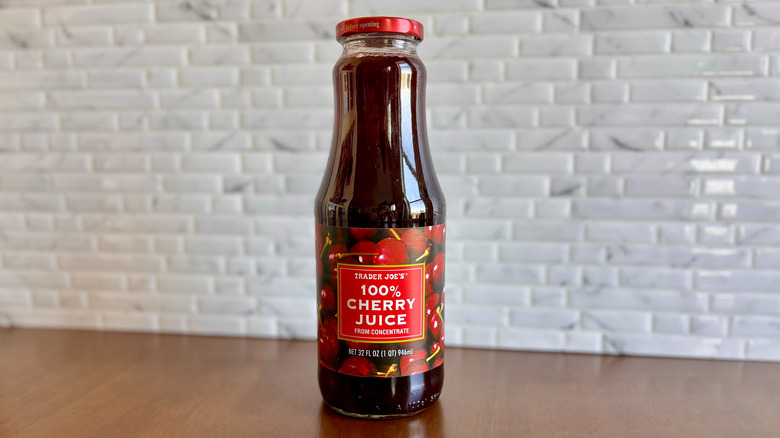 Cherry juice isn't an obscure beverage, but it's also likely not the first thing you think of when it comes to juice. Trader Joe's cherry juice is perfectly fine — it's a little bit sweet, a little bit tart, and is certainly far from offensive. But could I see myself wanting to sip on this cherry juice at any point in the day? No, probably not.