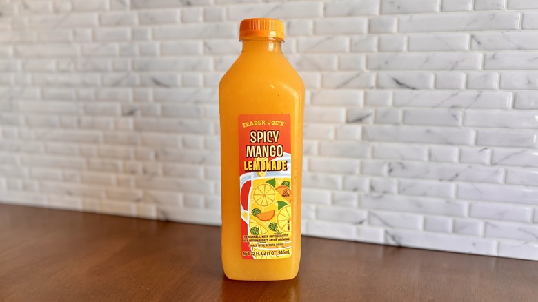Sure, you could pick up a bottle of plain lemonade from Trader Joe's — one of the best store-bought lemonade brands — or you could do yourself a huge favor and pick up a bottle of the spicy mango lemonade instead. This stuff isn't messing around with its spicy claim; there is a palpable spiciness that hits the palate immediately, and continues on even after swallowing. If you aren't a fan of spice, then it's almost guaranteed that you won't like this lemonade. If you are, however, then this is a delicious option, with strong hints of jalapeño and cayenne making themselves known with every sip.