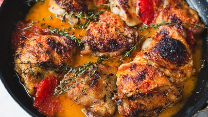 Recipe developer Ksenia Prints brought this pairing to life with her roasted grapefruit chicken thighs recipe, and the result is a shining example of why it's such a good idea. Dancing on your palate is a medley of sweet, tart, and zesty notes, falling into perfect harmony with the chicken's savory base. Every now and then, herby and garlicky hints chime in and layer the dish with delightful aromas. The flavor depth is refreshingly exquisite and balanced, showcasing the best of what the main ingredients have to offer. It's a stunning choice for any occasion, whether it's a fancy dinner when you're aiming to impress, or just a regular weeknight meal.