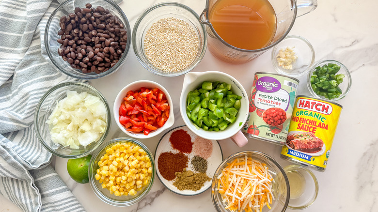 Gather the ingredients for one-pan quinoa enchilada skillet