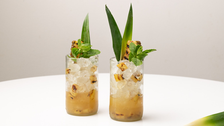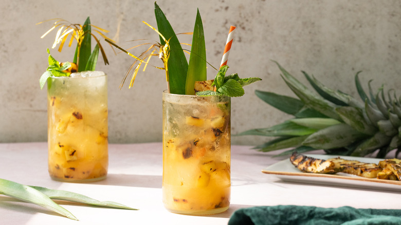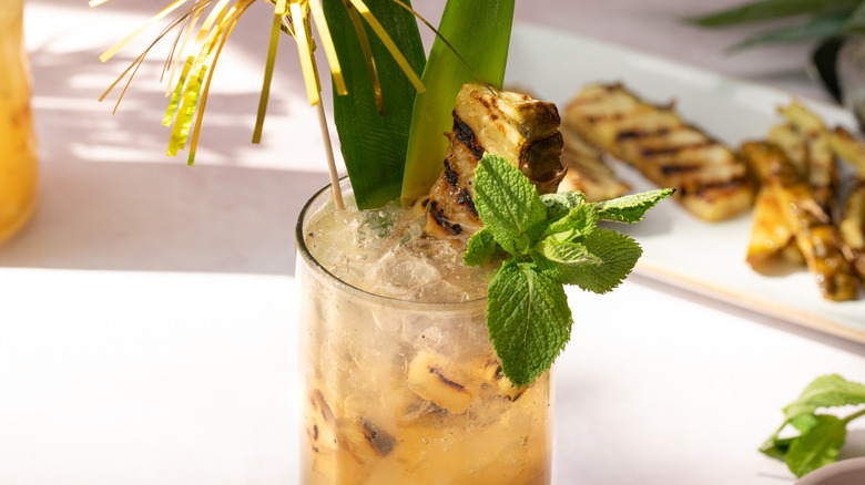 Having tried this grilled pineapple mojito, there's a good chance you'll want to expand and introduce grilled pineapple to all of your favorite cocktails. Luckily, there are plenty of other grilled pineapple cocktail options available to you. Firstly, while the general rule of thumb when making a mojito is that you should stick to white rum due to its milder flavor, for this mojito you don't have to abide by this rule. The grilled pineapple adds a powerful dose of caramelized tropical sweetness and smokiness to the mix, and this flavor pairs really well with spiced rum, which will add even more depth to your mojito.