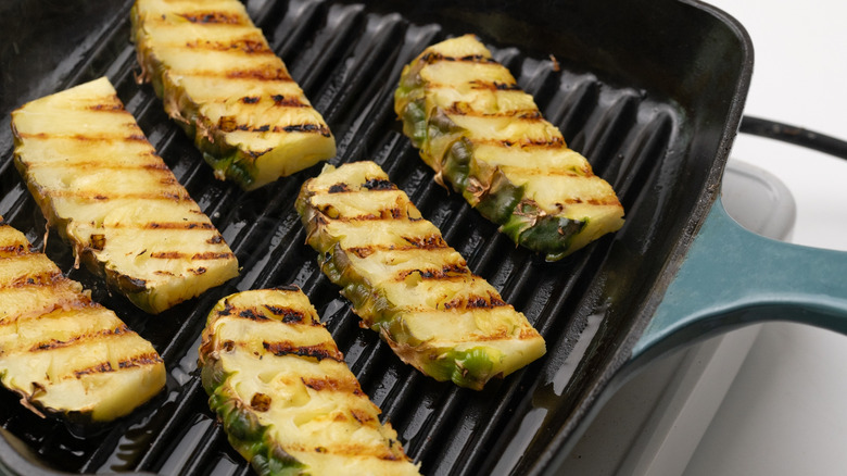 - Remove the grilled pineapple from the pan and leave to cool for 10 minutes.