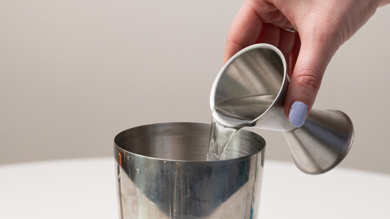 - Add the rum and a handful of ice to the shaker. Shake well.