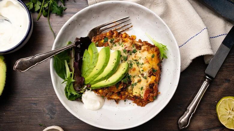 If the last recipe piqued your interest but you were hoping for something with a little more heft to it, this beefy cheesy Mexican casserole created by Tasting Table's Jennine Rye could be the move. It does take a little longer to cook since it's so much thicker, but that won't matter once you've dished this beauty out on your plate. This recipe uses similar ingredients such as corn, black beans, and tortilla chips, but throws every spice on the rack into the pot for a mouthwatering concoction that will pacify even the pickiest of eaters.