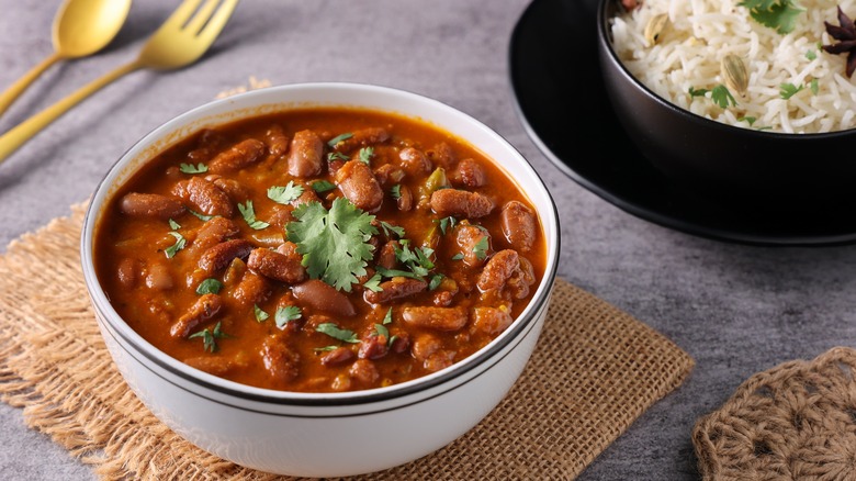 While such a curry is typically made with dried kidney beans that are soaked overnight, you can use canned kidney beans for a very similar result with a quicker and more convenient preparation process, as this version of the dish can come together in a matter of minutes. The curry's thick, fragrant, tomato-infused sauce imbues tender kidney beans with moisture and tantalizing spice, creating a hearty meal that certainly doesn't taste like it was made with standard pantry products.