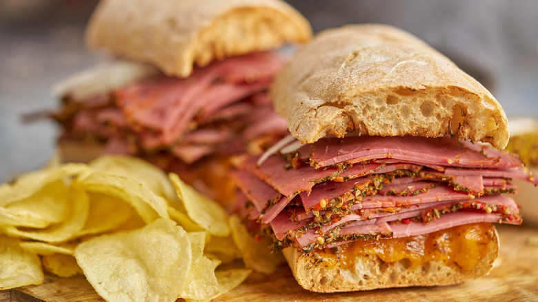 Few dishes have a format as straightforward as a sandwich. At its most fundamental, it's as simple as cooking gets — ready-to-eat foods like cured meats, cheese, and vegetables placed between two slices of bread. Yet, take a gander at sandwich recipes, and it's clear how many renditions can be attributed to such a template. The filling can be an elaborate cooked food, like sautéed fish or fried chicken. The doughy vessels can encompass dozens of bread types, although most maintain they should be of the leavened variety.
