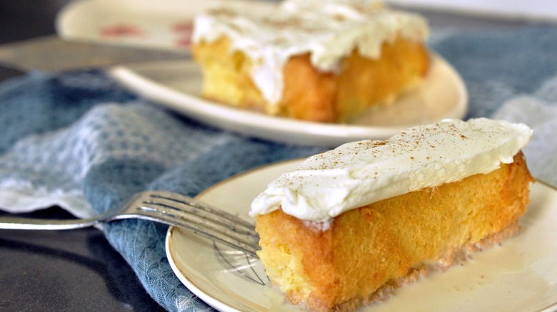 Now that we've covered taste and cost, let's compare the store-bought tres leches cake to the homemade version. It's pretty darn close. While it's true that making the cake yourself means you get to create any version you want, whether it be the classic or some alternative flavor, let's be honest — we don't always have the time to create a confectionery masterpiece at home. So, considering how delicious and moist the Trader Joe's version is, it's a great alternative when you crave that luscious Latin American dessert.