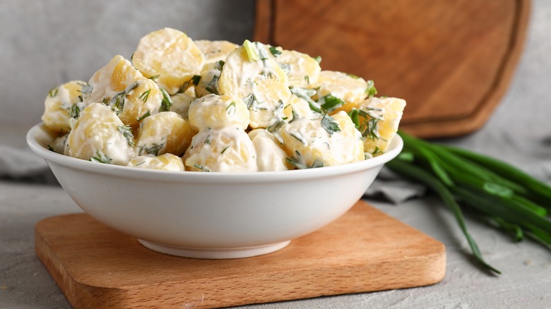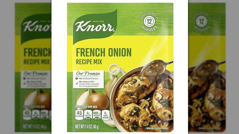 With this one ingredient, it's easy and affordable to add a rich caramelized onion taste to your potato salad. A 1.4-ounce packet of Knorr French onion soup mix runs for just $1.99 via Amazon. The main ingredients include powdered onions, cornstarch, salt, sugar, onion powder, citric acid, and beef fat. It's like dehydrated astronaut food, and chances are you can find any brand of the stuff in your local grocery store's soup aisle.