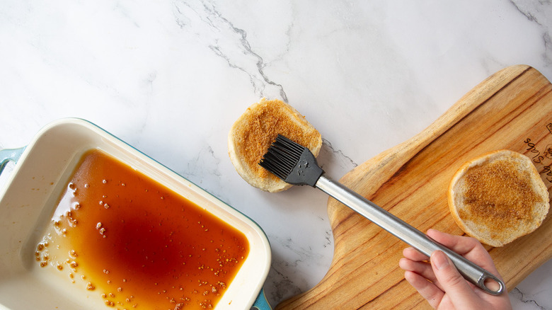 Brush the remaining marinade from the tofu over the bottom of the bun.