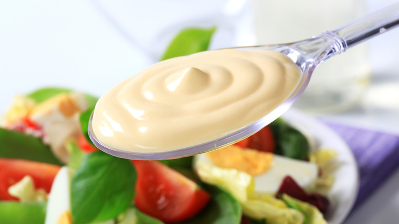 You can probably start to see why Kewpie is an ideal component in creamy salad dressings. Egg yolks on their own are already a secret ingredient here, since they help balance out acid and spice. But when you incorporate a condiment based around just the yolks, you get an extra rich, thick dressing. Plus, these bottles don't just make a great substitute for regular mayo. You can insert Kewpie mayo in place of a multitude of creamy ingredients, from sour cream to yogurt, and you can use their blend of vinegars to bring tang to your salad.