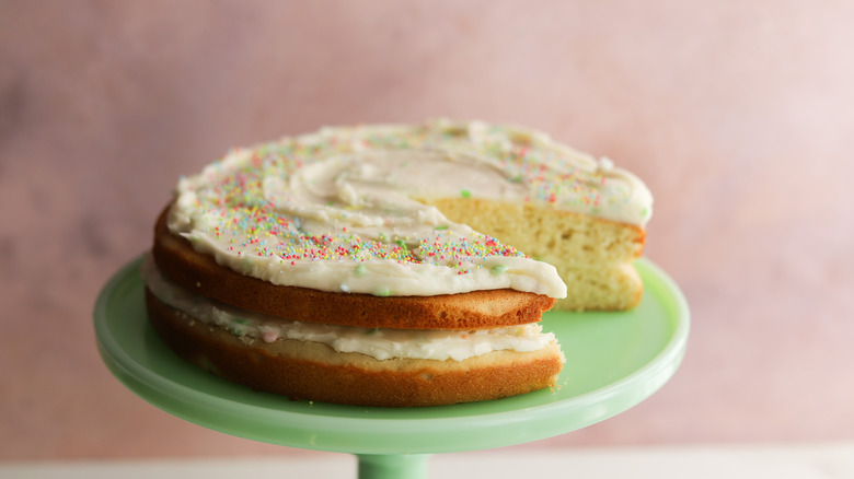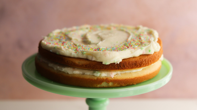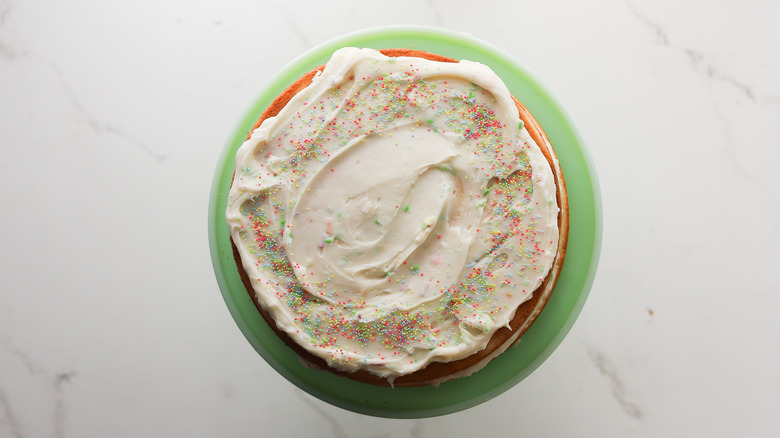 While many recipes for buttercream frosting can be adapted for dairy-free use by simply substituting the butter with vegan butter, there are some other clever workarounds out there. The same coconut cream that goes into the cake can be whipped into an airy topping that can be used instead of frosting. Keep in mind that this option won't be as stiff as buttercream frosting and may not work as a filling between layers.