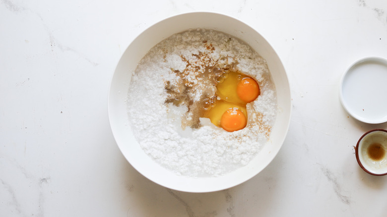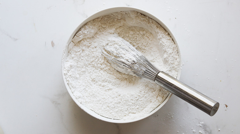 - In a separate bowl, whisk together the flour, sugar, salt, and baking powder.