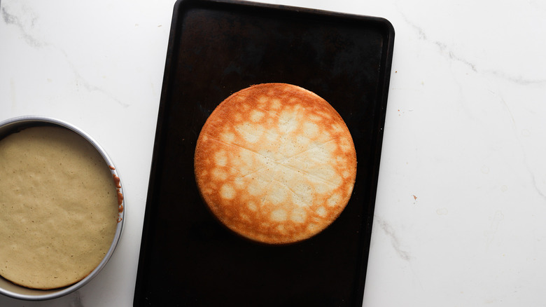 - Remove from the oven and let cool before removing the cakes from the pans.