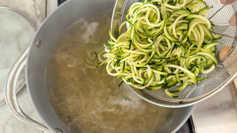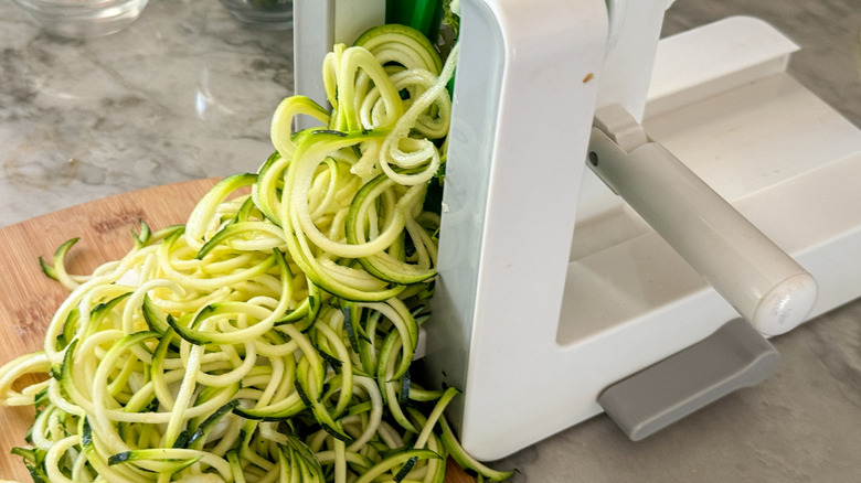 - While you wait for the water to boil, spiralize the zucchini.