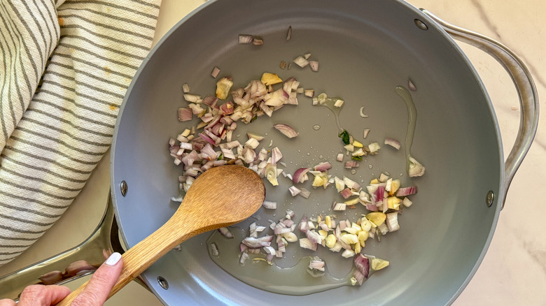Saute the shallots and remaining garlic for 5 minutes.