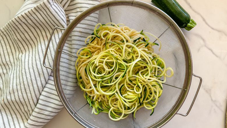 - Drain both the spaghetti and zucchini noodles in a colander.