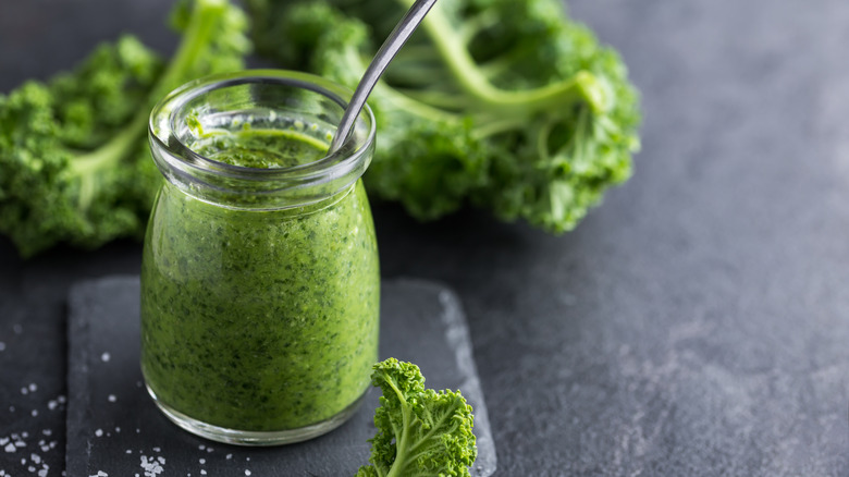 Whether you're swirling it into your canned tomato soup or incorporating it in pastry twists with parmesan, kale, and walnuts, there are plenty of good reasons to crack open a jar of pesto. But since it has more of a paste-like texture than a typical sauce, it tends to feel more dense than your average tomato or Alfredo sauce. So, instead of pouring the whole jar into your dish, you'll often have leftovers long after your pasta has been eaten — but it would be a shame to toss all that herby goodness in the trash.
