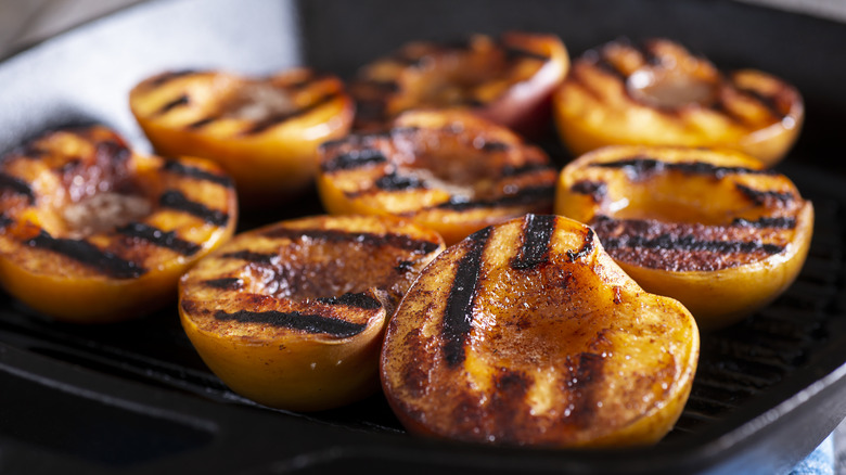 Muddling your grilled fruit will extract all of its juice, and in the case of a peach, it will have a subtle floral sweetness that works perfectly with a bourbon's woodsy notes. You will want to use anywhere from half a peach to a whole peach per drink, depending on just how peachy you want it to taste. If you want to add a little spice, sprinkle some cinnamon or nutmeg on your peaches as you grill them. Cinnamon has a woodsy flavor that will further amplify the notes of your bourbon and make you feel like you are enjoying a slice of peach pie.
