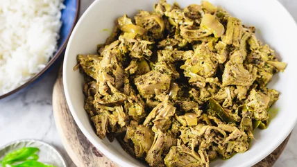 Polos curry is a traditional Sri Lankan coconut curry that typically features jackfruit, a lesser-known tropical fruit. When ripe, jackfruit is sweet with a banana-like flavor. But it's the unripe green jackfruit we'll be using here, which is available canned and has recently grown in popularity as a plant-based meat substitute due to its mild flavor and a texture reminiscent of shredded chicken or pulled pork. However, in this Sri Lankan curry jackfruit is not meant to mimic another ingredient, but is delicious in its own right, soaking up the spicy coconut curry sauce. Try this creamy, pungent curry and discover the myriad flavors within this island nation's cuisine.