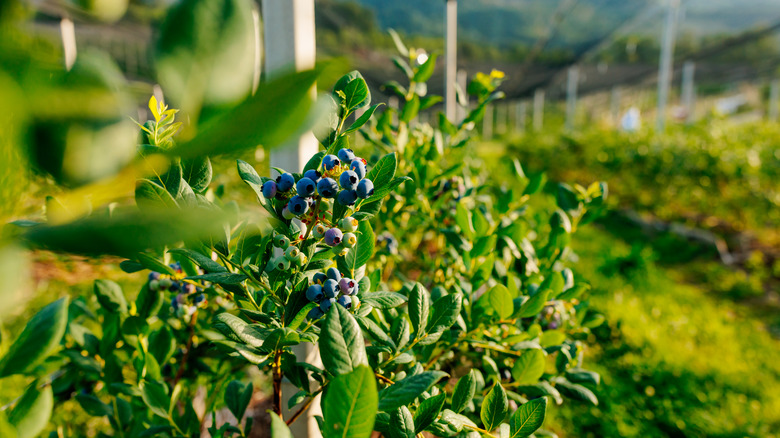 The average American ate 2.5 pounds of blueberries apiece in 2020, according to the International Blueberry Organization (via Rural Migration News). So, where do all those blueberries come from? As it turns out, for Americans, it's likely that these little indigo fruits aren't crossing any oceans to reach them. Blueberries are native to North America, so it makes sense that the United States is the world's largest blueberry producer. In fact, over a whopping 200,000 tons of blueberries are grown and harvested in the U.S. every year, and the country leads a handful of other serious blueberry growers and exporters throughout the world.