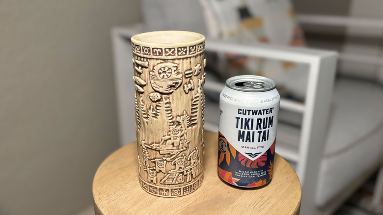 To enjoy mine, I opted to pour it into crushed ice in my Star Wars tiki mug to really gather the full effect of a tiki style drink. Although this one certainly did not have a strong alcohol taste, the flavor of the drink itself was sippable and definitely reminded me of other mai tais I've had in restaurants and bars. The overall balance made this my favorite flavor among the bunch. If you're used to a more citrusy mai tai recipe, you'll find this one to be a little sweeter with a strong pineapple taste — but that's what made this canned cocktail quite enjoyable. Of all the drinks I tried, this was the one that earned itself a finished can and rightly earning that top spot.