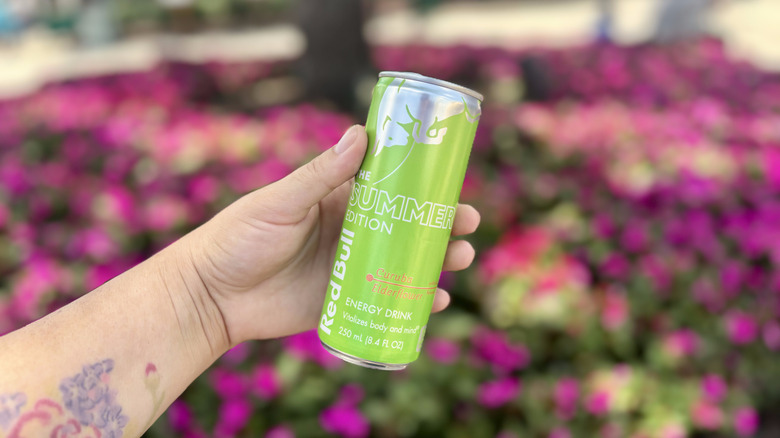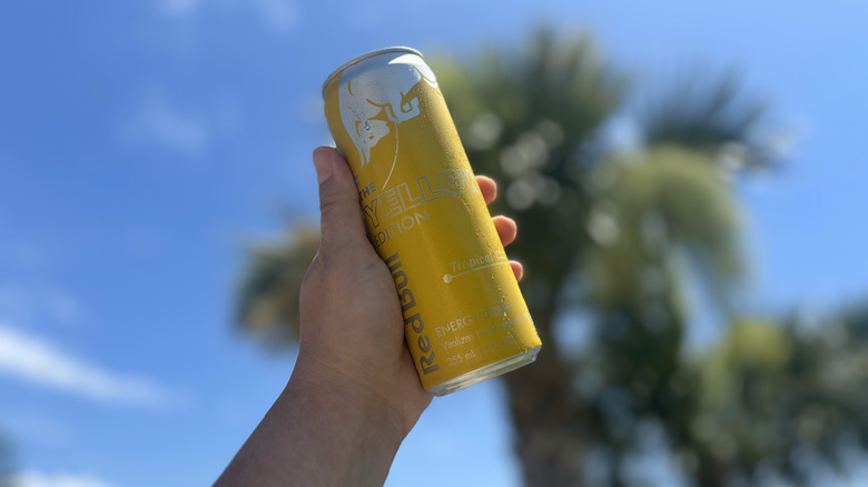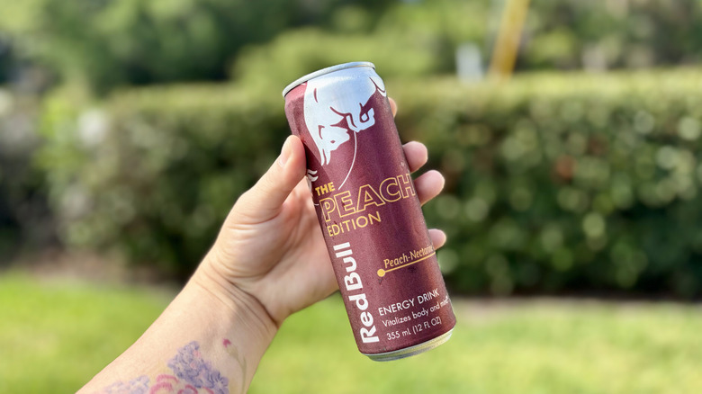 In 2019, Red Bull came out with the Peach Edition, as well as a sugar-free pear variety. Though the pear flavor may be gone — much to the chagrin of those who prefer sugar-free drinks — the Peach Edition remains. While many different Red Bull editions take their names from a color, this one is actually named after the fruit flavor it aims to impart.
