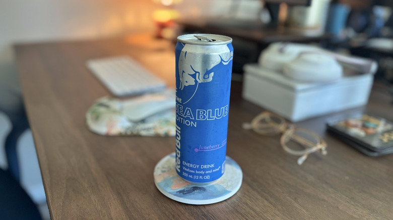 A fresh juneberry tastes something like an almond, and though I don't necessarily get almond from a can of Red Bull's Sea Blue energy drink, there is a flavor that resembles something closer to a typical mixed berry feel than anything else. I ranked this one as my least favorite of the flavored editions because the juneberry feels odd here and a little out of place. While Sea Blue is certainly a fun name bringing to mind a beautiful blue oasis, the fruit flavor doesn't actually make sense with this one — and rather than a blue color, the drink actually has more of a lavender hue.
