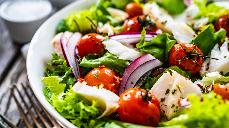 You might know frisée as curly endive because it's in the vegetable family known as chicory, which includes traditional endive and radicchio. Their complementary flavors are why these ingredients are often paired together in a variety of salad recipes. Frisée itself offers bitter and peppery notes that pair well with ingredients like poached eggs, vegetables like asparagus, and a vinaigrette salad dressing to finish off the dish. The greens will also bring some crunch to your salad, which helps if you are using other more leafy greens in the bowl like butter lettuce. Although, you can pair frisée with any ingredients that will satisfy your salad cravings.