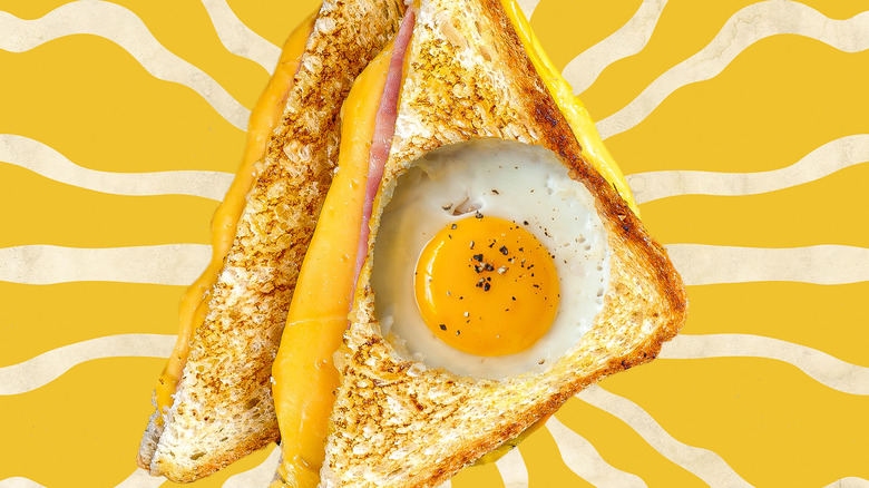 But even something timeless can be upgraded and one clear way to do this is cheese. It's one of those ideas that is so simple you'll wonder why you didn't think of it first — combine a grilled cheese and egg-in-a-whole. A simple grilled cheese is just as easy to core as a few slices of bread and you get all the extra flavor, melty texture, and salt cheese brings.