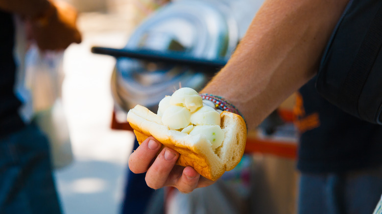 Sliders are the perfect bite-sized and manageable finger food to serve for a backyard get-together. There are numerous eye-catching slider recipes you can follow to use hot dog buns in a fresh way. Whether you're in the mood for baked ham and Swiss cheese sliders or chicken sliders, you don't always have to opt for a mini burger version. All you have to do is cut the hot dog buns into three even pieces to mimic the slider bun size. This is the ideal time to bust out that pretzel bun you weren't sure how to finish. Whole wheat or white buns work beautifully, too.