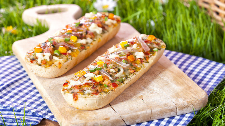 There's something so satisfying about a crusty, buttery garlic bread. For this appetizer, you might want to stick with some of the basic buns, like a white bread bun or whole wheat. Make this as you would any homemade garlic bread: Bun, garlic, butter, and fresh parsley for an herbal addition. This is great for both soft and partially stale hot dog buns since you end up baking and broiling them. However, avoid hard and stale bread, which will get too crispy during baking.