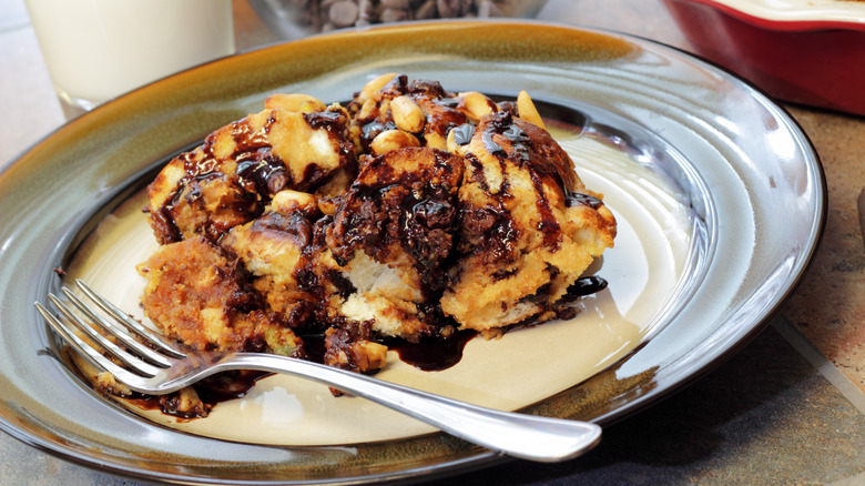 If you left the bag open and the buns are stale — or if they're beaten up and torn — bread pudding is a fantastic way to use any remaining pieces. The buns get soaked in a mixture of cream, milk, egg, sugar, spices, and a few other ingredients for a perfect dessert to eliminate any toughness. This rich bread pudding takes around an hour and a half to cook, but you'll be drooling once it's ready.