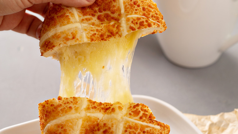 In Mexico, Oaxaca cheese is one of the most popular types to melt into a quesadilla. Consequently, it'd also be the perfect addition to your grilled cheese sandwich. Its stringy texture breaks down without the need to grate it. Plus, it's a fun and oddly satisfying task to pull long threads of Oaxaca cheese from its spherical structure.