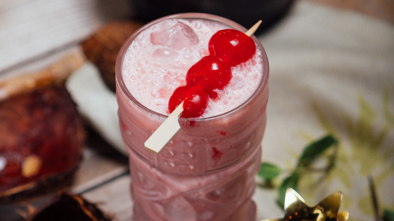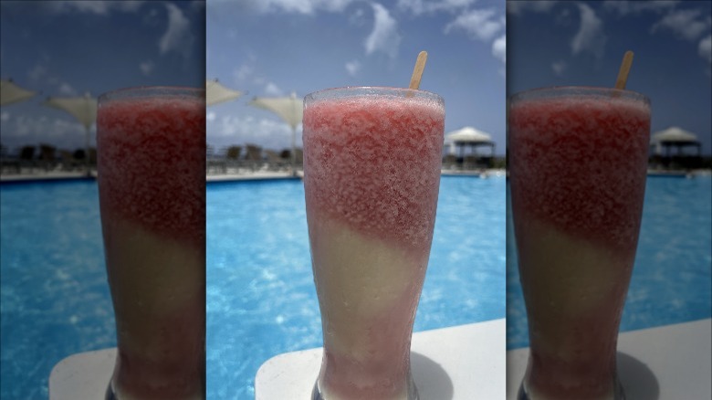What the cocktail lacks in nuanced complexity, it makes up for in its bright contrast of flavors. The tanginess of a lime-tinged and fresh strawberry mix perfectly contrasts to the creamy, tropical flavors of the piña colada. The two drinks can be stacked up on top of each other, or even split vertically for added effect. Oftentimes, on top goes a fruity garnish, like a slice of strawberry, pineapple, or perhaps a maraschino cherry. And as for the name — well, origins are uncertain, but many suggest the drink came about during the neon-drenched vibes of 1980s Miami and the famous TV show of the same name. It emerged during a time when frozen drink machines were trending — likely inspired by the success of the frozen margarita — and hasn't disappeared from coastal slushie dispensers since.