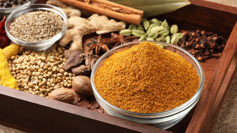 Breakfast food at its finest, scrambled eggs are a no-brainer for all kinds of mornings — whether you're on a hectic time crunch or just casually kicking off the day. Ten minutes in the kitchen with a few staples and you'll have a flavorful, filling plate ready on the table. Scrambled eggs are not just a convenient breakfast staple, but they can be elevated with just one extra ingredient. There's no limit to what you can add, but for those who like their scrambled eggs bold and memorable, curry powder might just be the ideal choice.