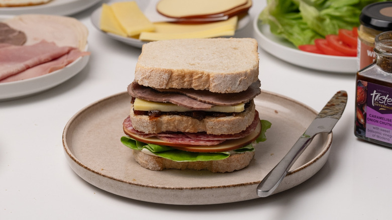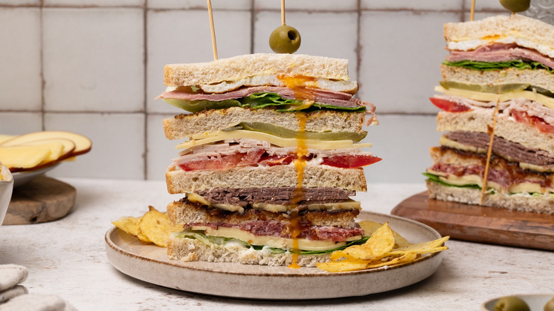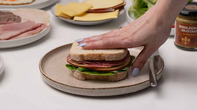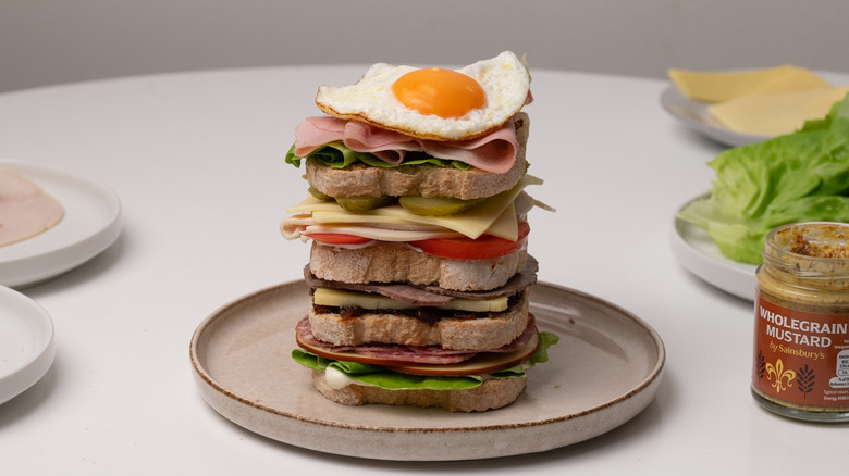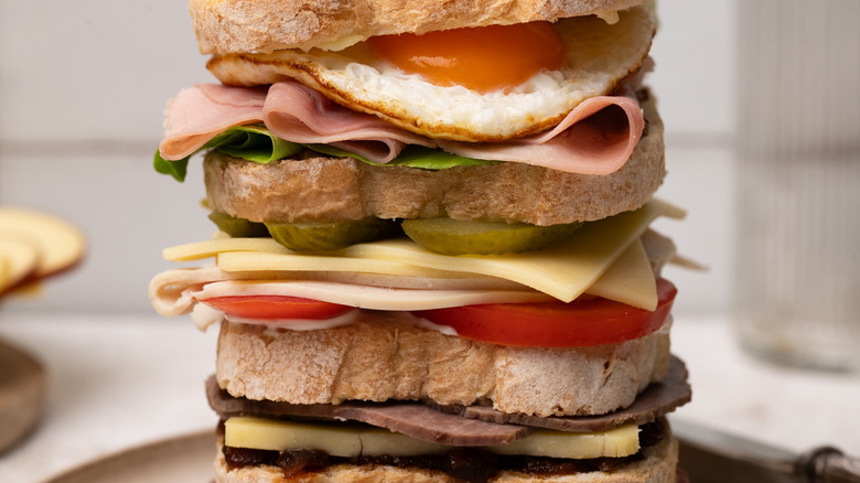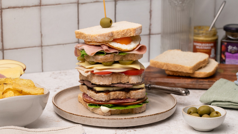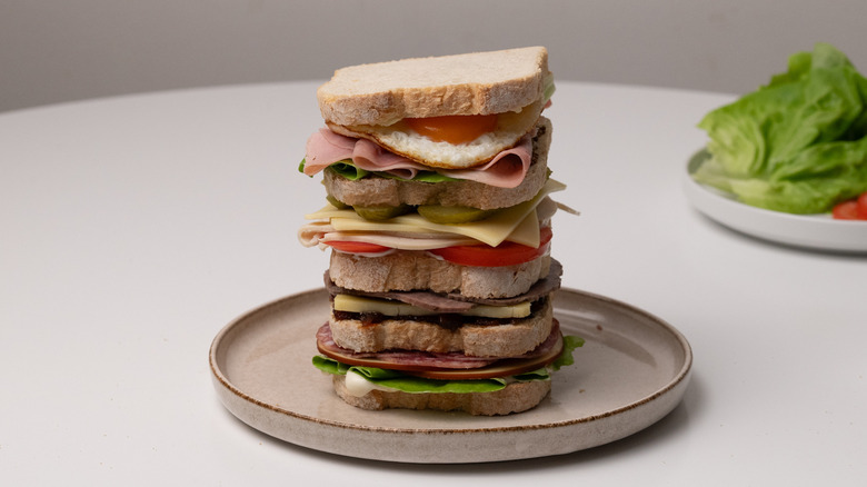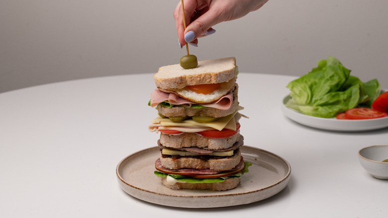 Perfect for those who can't decide on a singular sandwich filling, the Dagwood is named after a character from the comic strip Blondie, who has a love for assembling comically oversized sandwiches. Dagwood sandwiches became a running gag in the beloved comic, with the character regularly using a variety of leftovers from the fridge to make increasingly large stacked sandwiches. When making your own version of a Dagwood, don't get too caught up on using specific ingredients — you can use anything you want, just make sure to stack it tall.