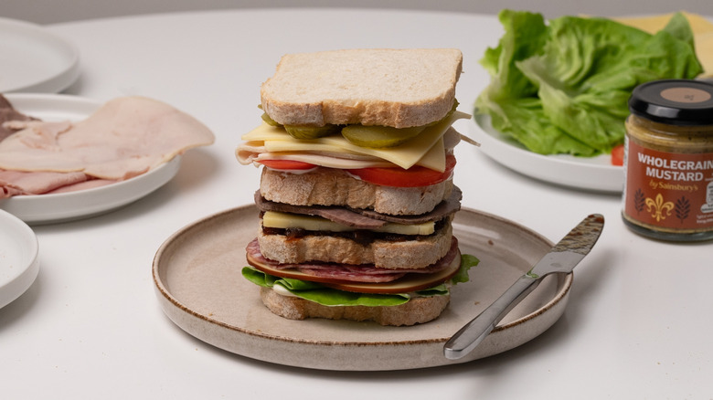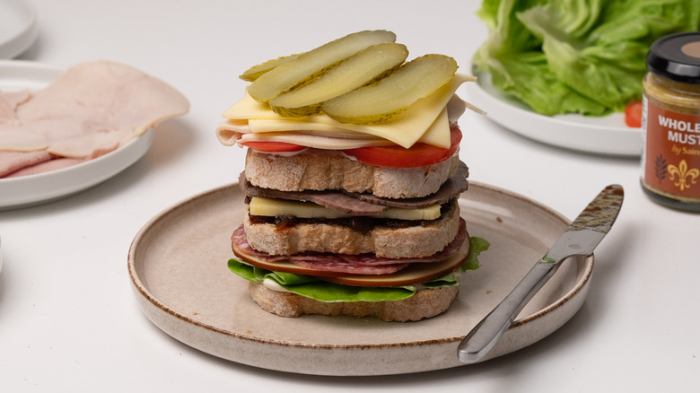 Gather the ingredients for this loaded Dagwood sandwich recipe